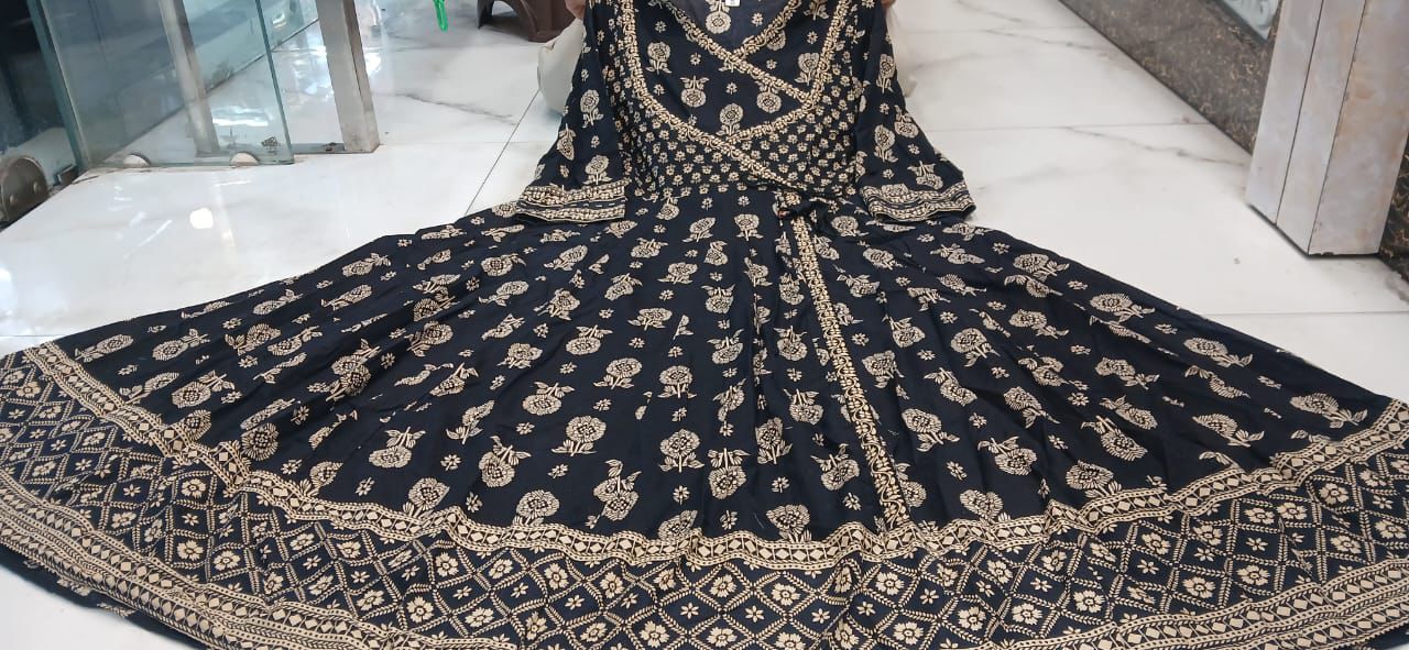 Kurti __ length 48 ready long full flair 3.5 meter ready flair anarkali style kurti Angrakha pattern