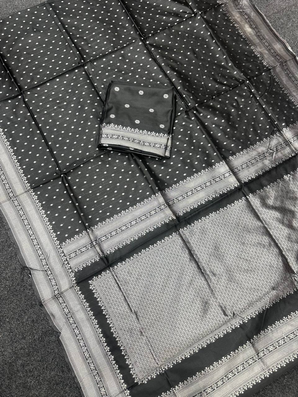 Beautiful Art Silk Jacquard Border Saree With Unstitched Running Blouse For Women Wedding Wear Party