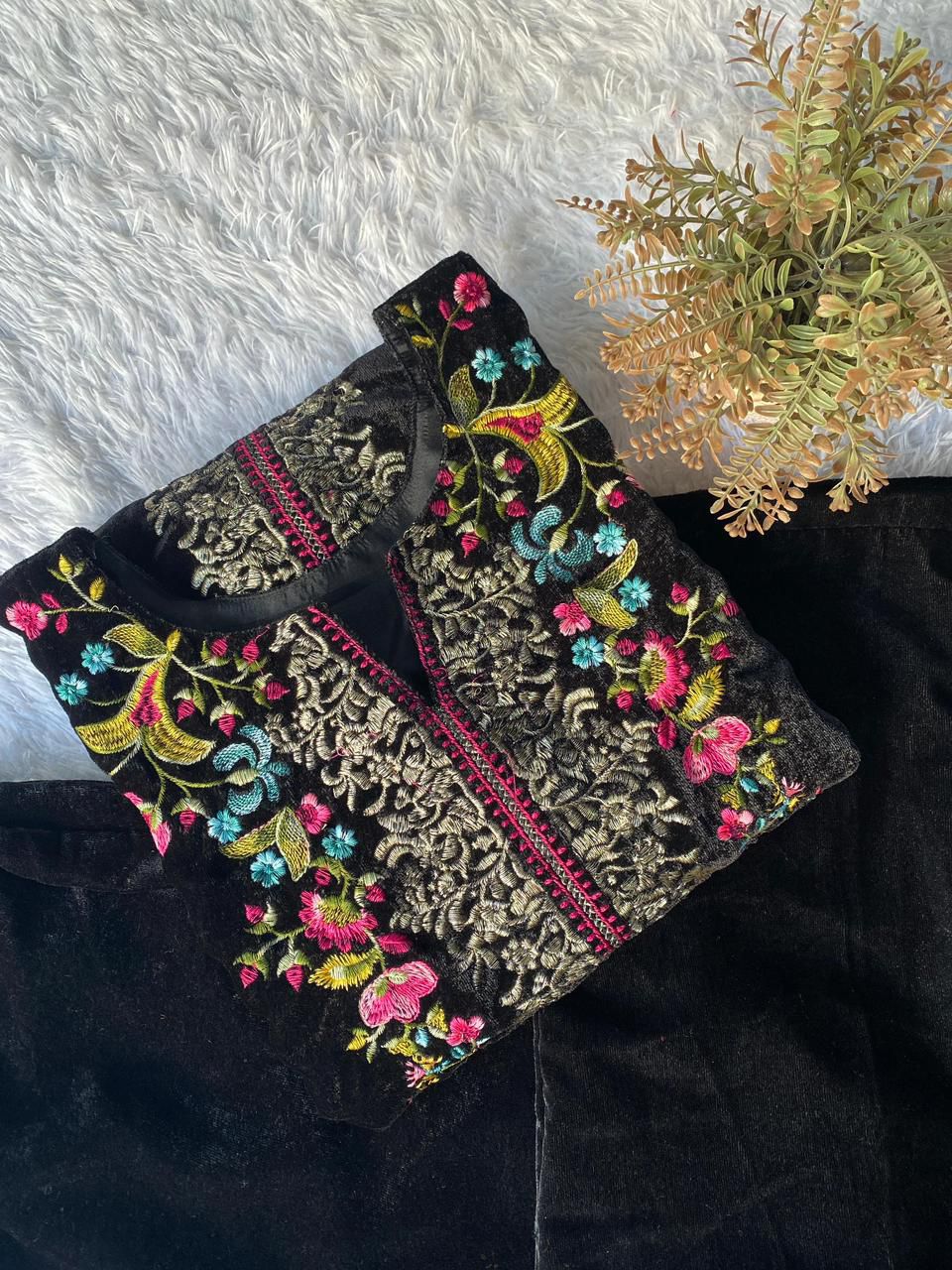 VELVET DESIGNER WEAR CO-ORD SET WITH EMBROIDERY WORK
